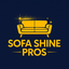 Logo for Sofa Shine Pros featuring a yellow sofa with sparkles on a dark blue circular background with the business name underneath.