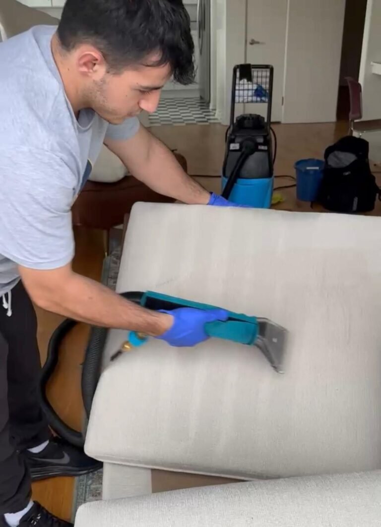 For homeowners searching for upholstery cleaning near me, professional service ensures your couch is thoroughly cleaned, evenly treated, and protected without the risk of over-wetting, discoloration, or residue buildup.